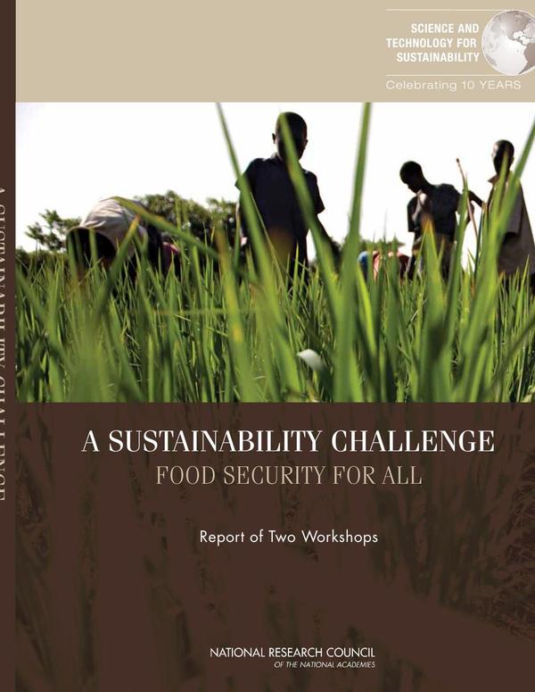 The National Research Council’s Science and Technology for Sustainability Program hosted two workshops in 2011 addressing the sustainability challenges associated with food security for all. The first workshop, Measuring Food Insecurity and Assessing the Sustainability of Global Food Systems, explored the availability and quality of commonly used indicators for food security and malnutrition; poverty; and natural resources and agricultural productivity. It was organized around the three broad dimensions of sustainable food security: (1) availability, (2) access, and (3) utilization. The workshop reviewed the existing data to encourage action and identify knowledge gaps. The second workshop, Exploring Sustainable Solutions for Increasing Global Food Supplies, focused specifically on assuring the availability of adequate food supplies. How can food production be increased to meet the needs of a population expected to reach over 9 billion by 2050? Workshop objectives included identifying the major challenges and opportunities associated with achieving sustainable food security and identifying needed policy, science, and governance interventions. Workshop participants discussed long term natural resource constraints, specifically water, land and forests, soils, biodiversity and fisheries. They also examined the role of knowledge, technology, modern production practices, and infrastructure in supporting expanded agricultural production and the significant risks to future productivity posed by climate change. This is a report of two workshops.