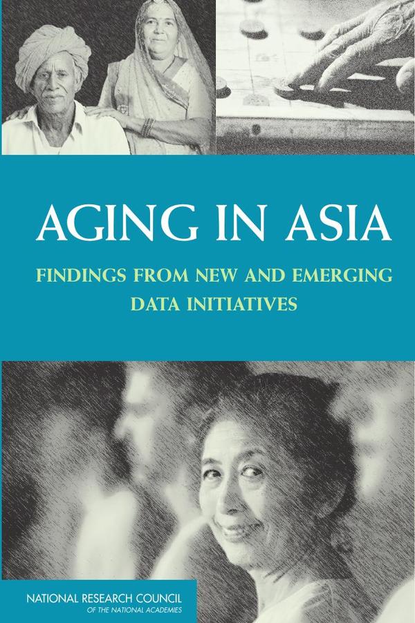 The population of Asia is growing both larger and older. Demographically the most important continent on the world, Asia’s population, currently estimated to be 4.2 billion, is expected to increase to about 5.9 billion by 2050. Rapid declines in fertility, together with rising life expectancy, are altering the age structure of the population so that in 2050, for the first time in history, there will be roughly as many people in Asia over the age of 65 as under the age of 15. It is against this backdrop that the Division of Behavioral and Social Research at the U.S. National Institute on Aging (NIA) asked the National Research Council (NRC), through the Committee on Population, to undertake a project on advancing behavioral and social research on aging in Asia. Aging in Asia: Findings from New and Emerging Data Initiatives is a peer-reviewed collection of papers from China, India, Indonesia, Japan, and Thailand that were presented at two conferences organized in conjunction with the Chinese Academy of Sciences, Indian National Science Academy, Indonesian Academy of Sciences, and Science Council of Japan; the first conference was hosted by the Chinese Academy of Social Sciences in Beijing, and the second conference was hosted by the Indian National Science Academy in New Delhi. The papers in the volume highlight the contributions from new and emerging data initiatives in the region and cover subject areas such as economic growth, labor markets, and consumption; family roles and responsibilities; and labor markets and consumption.