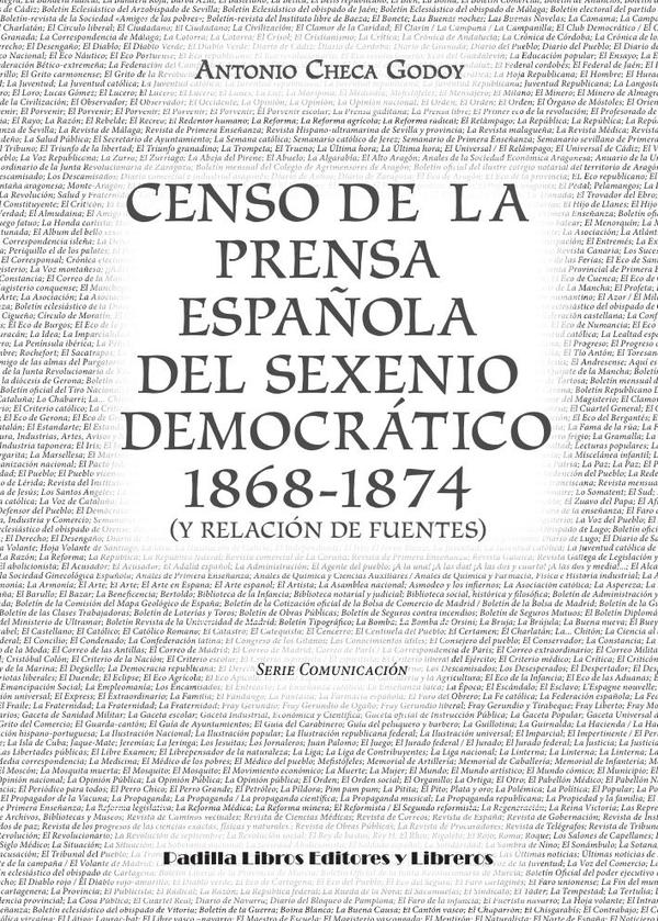 «Censo de la prensa española del sexenio democrático 1868-1874 (y relación de fuentes)» recoge todas las publicaciones periódicas que salieron en España durante los turbulentos años (1868-1874), divididas por regiones; incluye también las fuentes en Francia. Además del listado de publicaciones nos añade, a parte de sus características básicas, la hemeroteca en la que se puede encontrar.