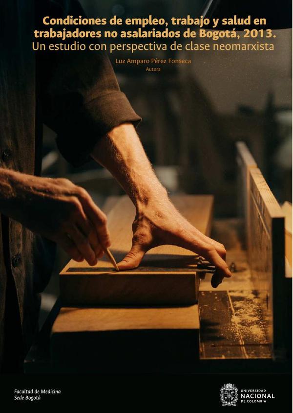 Condiciones de empleo, trabajo y salud en trabajadores no asalariados de Bogotá, 2013: un estudio con perspectiva de clase neomarxista es un libro que llama la atención sobre la relevancia de la clase social para la investigación en salud pública, en particular, para aquella que aborda la salud de los trabajadores. La categoría explicativa clase social tiende a ser invisibilizada siendo una causa importante de diversos fenómenos de las sociedades. El trabajo no asalariado ha sido poco estudiado en el campo del trabajo y la salud siendo el grupo laboral mayoritario del país. Este libro muestra al lector cómo al examinar la formulación teórica neomarxista de la clase no asalariada en una muestra de no asalariados, emerge la posición de clase no asalariado-no propietario. Una posición de clase contradictoria, puesto que, en ella, de manera intrínseca, se es propietario, en el sentido de no asalariado, y no propietario de los medios de producción. También es una complejidad de clase ligada a una sociedad capitalista periférica como la bogotana que configura las mejores condiciones, en general, para la posición capitalista tradicional y condiciones más favorables para las posiciones propietarias en comparación con las no propietarias.