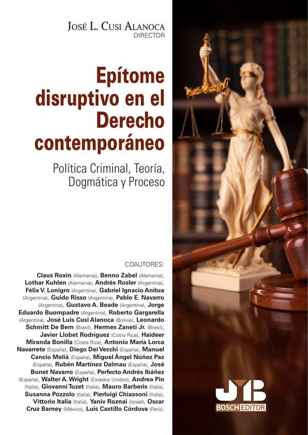 En un mundo en constante evolución, es fundamental que el derecho se adapte a los nuevos desafíos y realidades sociales. El derecho es una disciplina en constante evolución –en el ámbito jurídico, el cambio es inevitable-, que se nutre de las transformaciones de la sociedad y las demandas de justicia. En un mundo cada vez más interconectado y cambiante, surge la necesidad de repensar nuestras concepciones tradicionales. Es en este contexto que nace: EPÍTOME DISRUPTIVO EN EL DERECHO CONTEMPORANEO. Política Criminal, Teoría, Dogmática y Proceso. Una obra calificada como epítome disruptivo, pues combina de forma útil la teoría y la dogmática en tres materias relacionadas muy profundamente pero que muchas veces son estudiadas de forma independiente. Este libro colectivo es el resultado del esfuerzo conjunto de distinguidos profesores de Alemania, Italia, Israel, Estados Unidos “EE.UU.” y diferentes países de Iberoamérica para explorar los debates en tres áreas fundamentales: el Derecho Penal, Constitucional y Procesal. “Epítome disruptivo en el derecho contemporáneo” es una invitación a cuestionar lo establecido y a desafiar los límites tradicionales del derecho. En este sentido,epítome disruptivo en el derecho contemporáneo no pretende ser un estudio definitivo, sino un punto de partida para el debate y la reflexión. Esperamos que este libro sea un punto de partida para debates apasionantes, para nuevas investigaciones y para el surgimiento de soluciones justas. ¡Que inspire a los académicos! José L. Cusi Alanoca