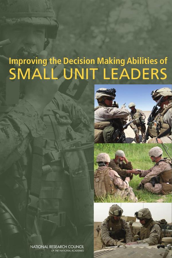 For the past decade, the U.S. Marine Corps and its sister services have been engaged in what has been termed “hybrid warfare,” which ranges from active combat to civilian support. Hybrid warfare typically occurs in environments where all modes of war are employed, such as conventional weapons, irregular tactics, terrorism, disruptive technologies, and criminality to destabilize an existing order.In August 2010, the National Research Council established the Committee on Improving the Decision Making Abilities of Small Unit Leaders to produce Improving the Decision Making Abilities of Small Unit Leaders. This report examines the operational environment, existing abilities, and gap to include data, technology, skill sets, training, and measures of effectiveness for small unit leaders in conducting enhanced company operations (ECOs) in hybrid engagement, complex environments. Improving the Decision Making Abilities of Small Unit Leaders also determines how to understand the decision making calculus and indicators of adversaries.Improving the Decision Making Abilities of Small Unit Leaders recommends operational and technical approaches for improving the decision making abilities of small unit leaders, including any acquisition and experimentation efforts that can be undertaken by the Marine Corps and/or by other stakeholders aimed specifically at improving the decision making of small unit leaders. This report recommends ways to ease the burden on small unit leaders and to better prepare the small unit leader for success. Improving the Decision Making Abilities of Small Unit Leaders also indentifies a responsible organization to ensure that training and education programs are properly developed, staffed, operated, evaluated, and expanded.