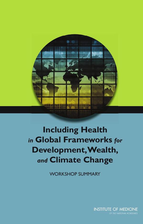 Including Health in Global Frameworks for Development, Wealth, and Climate Change is the summary of a three-part public webinar convened by the Institute of Medicine Roundtable on Environmental Health Sciences, Research, and Medicine and its collaborative on Global Environmental Health and Sustainable Development. Presenters and participants discussed the role of health in measuring a country’s wealth (going beyond gross domestic product), health scenario communication, and international health goals and indicators. The workshop focused on fostering discussion across academic, government, business, and civil society sectors to make use of existing data and information that can be adapted to track progress of global sustainable development and human health. This report examines frameworks for global development goals and connections to health indicators, the role for health in the context of novel sustainable economic frameworks that go beyond gross domestic product, and scenarios to project climate change impacts.