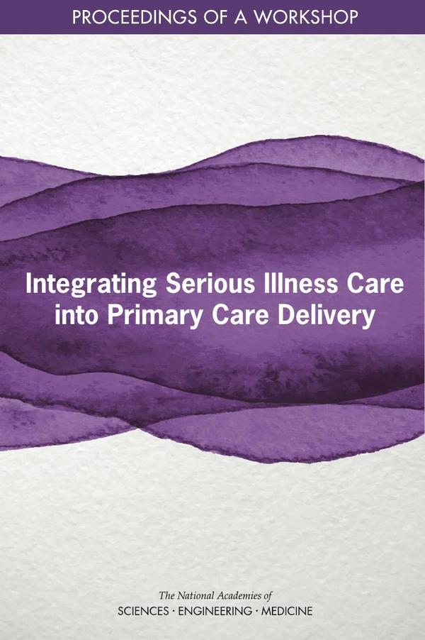 Approximately five percent of Medicare beneficiaries (2.2 million Americans) are living with serious illness, as are many other non-Medicare eligible individuals. This number is expected to grow rapidly as the population ages and the prevalence of progressive illness increases. In many communities, particularly urban and rural underserved communities, primary care clinicians are the main workforce caring for people with serious illness, which underscores the need to integrate high quality serious illness care into primary care delivery. To better understand the challenges and opportunities for integrating serious illness care into primary care settings, the National Academies of Sciences, Engineering, and Medicine’s Roundtable on Quality Care for People with Serious Illness hosted a virtual workshop on June 10 and 17, 2021. The workshop, titled Integrating Serious Illness Care into Primary Care Delivery, explored the shared principles of primary and serious illness care, the interdisciplinary teams that power both disciplines, the policy issues that can act as barriers to or incentives for integration, and best practices for integrating primary care and serious illness care. This Proceedings of a Workshop summarizes the presentations and discussions that occurred during the workshop.