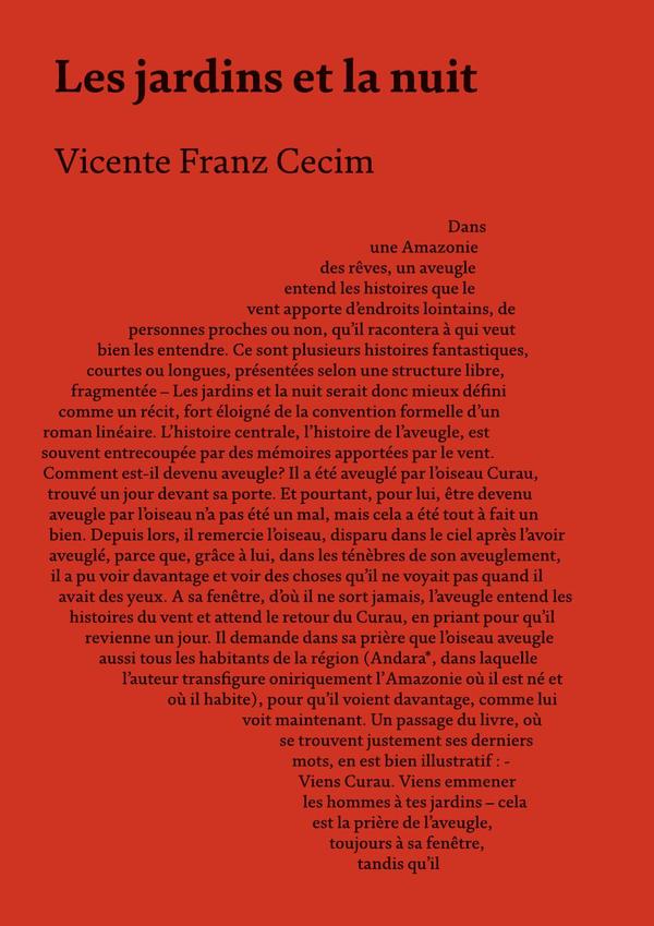 Prêmio Internacional Plural, México, 1981 with ‘A Noite do Curau’Premio de Crítica da APCA – Associação Paulista dos Críticos de Arte, 1988 with ‘Viagem a Andara’Historias fantásticas, cortas o largas – y el libro tiene muchas de ellas – que hacen que Les jardins et la nuit vaya más allá de la forma convencional de un libro lineal y tradicional. En su estructura libre y fragmentada, ya que la historia principal, la del hombre ciego, está constantemente cortada por otros cuentos que el viento trae a sus oídos.