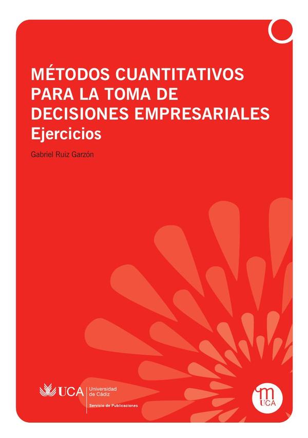 Este manual se confecciona como un apoyo práctico a las clases teóricas de la asignatura “Métodos cuantitativos para la toma de decisiones empresariales”, que se imparte en muchas de las facultades de Economía de nuestro país. El objetivo es que permita al lector ejercitarse mediante la repetición de problemas y adquirir esos conceptos no suficientemente afianzados.