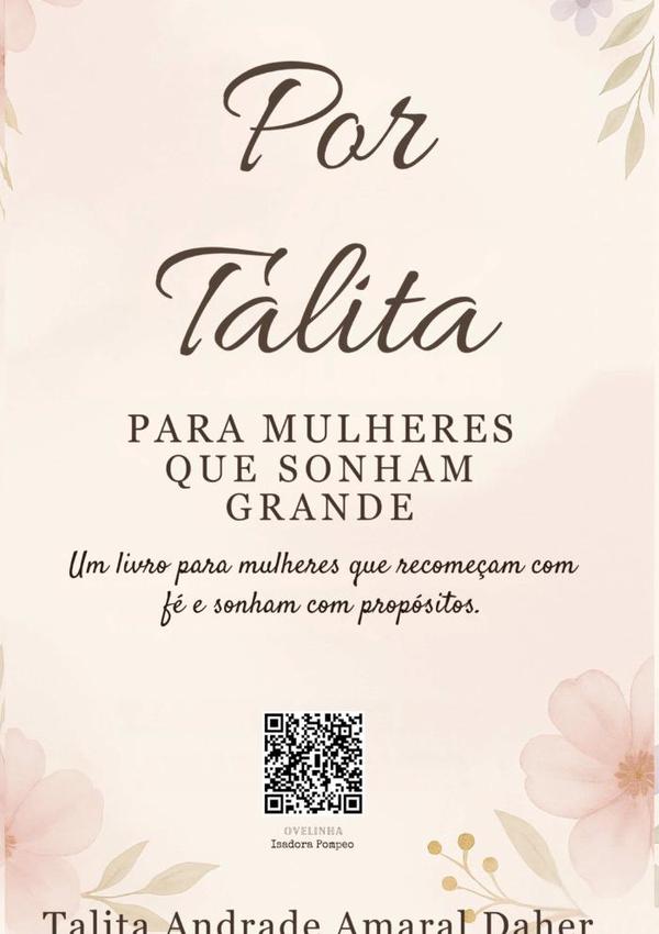Por Talita, para mulheres que sonham grandeTalita Andrade Amaral DaherMais do que um livro, essa obra é um convite à transformação da alma.Escrito por Talita Daher, empreendedora, mãe e mulher de fé, o livro reúne reflexões íntimas e práticas sobre recomeços, superação, propósito e coragem.Com uma linguagem sensível e inspiradora, a autora conduz a leitora por 16 capítulos recheados de verdade, afirmações e planos de ação, além de extras como planner, frases de impacto e oração.Cada página é um respiro para quem já pensou em desistir — e uma fagulha de fé para quem deseja florescer.Ideal para clubes de leitura, plataformas digitais, grupos femininos e espaços de evangelização.A obra também pode ser usada em contextos terapêuticos, grupos de mulheres, retiros ou ações sociais voltadas à autoestima e espiritualidade feminina.