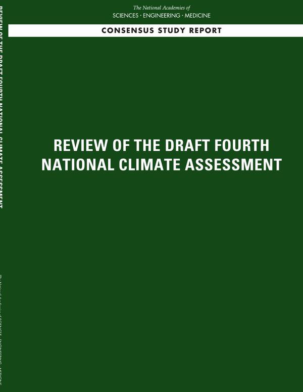 Climate change poses many challenges that affect society and the natural world. With these challenges, however, come opportunities to respond. By taking steps to adapt to and mitigate climate change, the risks to society and the impacts of continued climate change can be lessened. The National Climate Assessment, coordinated by the U.S. Global Change Research Program, is a mandated report intended to inform response decisions. Required to be developed every four years, these reports provide the most comprehensive and up-to-date evaluation of climate change impacts available for the United States, making them a unique and important climate change document.The draft Fourth National Climate Assessment (NCA4) report reviewed here addresses a wide range of topics of high importance to the United States and society more broadly, extending from human health and community well-being, to the built environment, to businesses and economies, to ecosystems and natural resources. This report evaluates the draft NCA4 to determine if it meets the requirements of the federal mandate, whether it provides accurate information grounded in the scientific literature, and whether it effectively communicates climate science, impacts, and responses for general audiences including the public, decision makers, and other stakeholders.