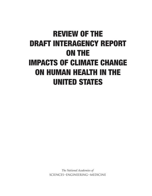 The U.S. National Climate Assessment identified a number of ways in which climate change is affecting, and is likely to affect, people, infrastructure, natural resources, and ecosystems. Those impacts, in turn, are increasingly having important current and potential future consequences for human health. There is a need to probe more deeply into how climate change impacts on the environment can create environmental stressors that, in turn, are having and/or have the potential to have significant impact on human health in a number of dimensions. In response to this need, the U.S. Global Change Research Program (USGCRP) has initiated an interagency Scientific Assessment on the Impacts of Climate Change on Human Health in the United States. The Assessment is intended to inform public health authorities, other planning and policy entities, and the general public. Review of the Draft Interagency Report on the Impacts of Climate Change on Human Health in the United States evaluates the scientific basis, findings, and key messages of the USGCRP Draft Assessment. This report offers a number of overarching suggestions on how the USGCRP report authors can enhance their identification and assessment of the science and better communicate their conclusions to all of their target audiences. These recommendations this help the Assessment to play a significant role in continued efforts to examine and explore the impacts of climate change on human health.