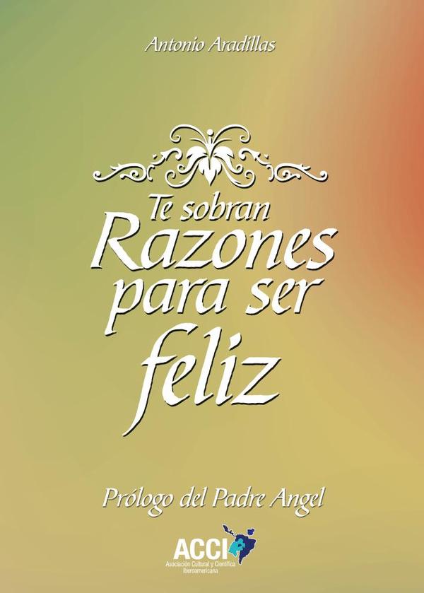 “Antes de colocarle el punto y aparte a esta reflexión personal sobre la felicidad, quiero hacer pública mi satisfacción por colaborar con Antonio Aradillas en la publicación de su nuevo libro “TE SOBRAN RAZONES PARA SER FELIZ”. En los albores de mis tareas pastorales por Asturias, como fundador y promotor de mis “Mensajeros de la Paz”, Antonio me hizo un hueco amable y acogedor en los medios de comunicación social en los que él trabajaba entonces en Madrid, como la SER -Hora 25- y el periódico PUEBLO, dando fe de mis realidades y propósitos a favor de los pobres, lo que contribuyó a la difusión nacional de unas y otrosCura, periodista y escritor polémico y polifacético, Antonio es hombre de paz, aunque algunos cuestionen tal condición sacerdotal. Me resulta gratificante reseñar el ofrecimiento de colaborar con él, además con el fraternal ofrecimiento de que los beneficios económicos que puedan reportar este libro se destinen a la expansión de nuestros “Mensajeros de la Paz”. ¡Que Dios nos lo pague a todos!”Ángel García Rodríguez(Fundador de “Mensajeros de la Paz”)