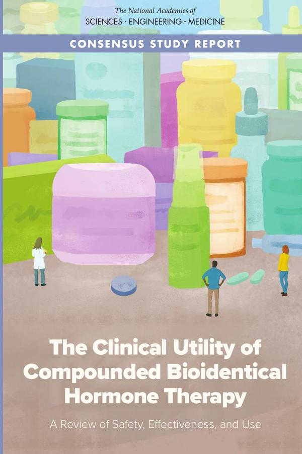The U.S. Food and Drug Administration (FDA) has approved dozens of hormone therapy products for men and women, including estrogen, progesterone, testosterone, and related compounds. These products have been reviewed for safety and efficacy and are indicated for treatment of symptoms resulting from hormonal changes associated with menopause or other endocrine-based disorders. In recent decades, an increasing number of health care providers and patients have turned to custom-formulated, or compounded, drug preparations as an alternative to FDA-approved drug products for hormone-related health concerns. These compounded hormone preparations are often marketed as “bioidentical” or “natural” and are commonly referred to as compounded bioidentical hormone therapy (cBHT).In light of the fast-growing popularity of cBHT preparations, the clinical utility of these compounded preparations is a substantial public health concern for various stakeholders, including medical practitioners, patients, health advocacy organizations, and federal and state public health agencies. This report examines the clinical utility and uses of cBHT drug preparations and reviews the available evidence that would support marketing claims of the safety and effectiveness of cBHT preparations. It also assesses whether the available evidence suggests that these preparations have clinical utility and safety profiles warranting their clinical use and identifies patient populations that might benefit from cBHT preparations in lieu of FDA-approved BHT.